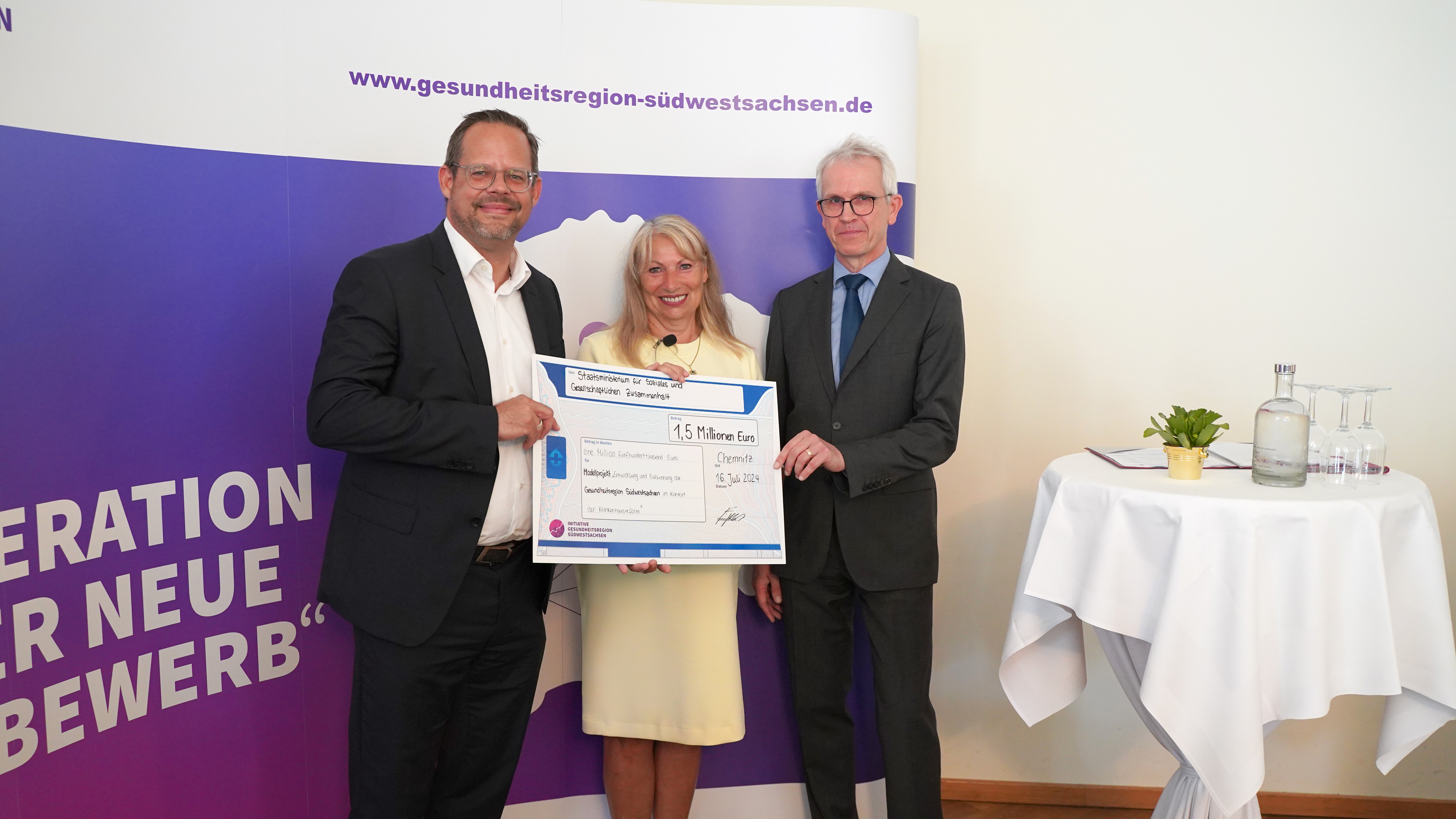 Der Freistaat Sachsen fördert das Vorhaben „Entwicklung und Evaluierung der Gesundheitsregion Südwestsachsen im Kontext der Krankenhausreform“ mit 1,5 Millionen Euro. Den Fördermittelbescheid hat Petra Köpping, Sächsische Staatsministerin für Soziales und Gesellschaftlichen Zusammenhalt, heute der Geschäftsführung des Klinikums Chemnitz – stellvertretend für die beteiligten Krankenhäuser in Chemnitz – überreicht.