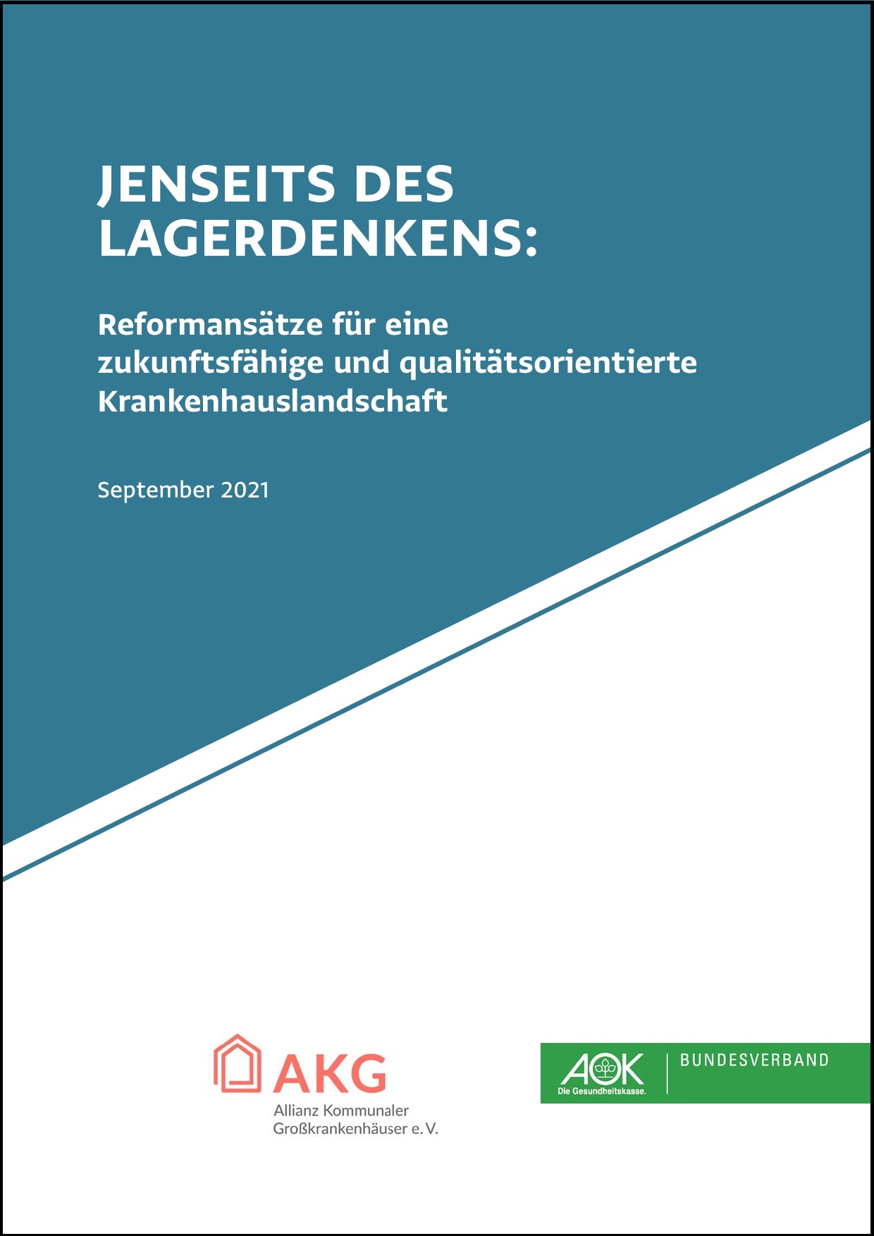 Berlin, 17. September 2021. Die Allianz Kommunaler Großkrankenhäuser (AKG-Kliniken) und der AOK-Bundesverband sprechen sich für eine qualitäts- und versorgungsorientierte Krankenhausplanung auf Basis von Strukturvorgaben des Gemeinsamen Bundesausschusses aus. Außerdem fordern sie eine gezielte Förderung der Spezialisierung von Kliniken bei komplexen oder neuartigen Behandlungen. In einem heute vorgestellten Positionspapier unter dem Titel „Jenseits des Lagerdenkens“ skizzieren sie auf Basis der Erfahrungen aus der Corona-Pandemie gemeinsame Reformansätze für eine zukunftsfähige und qualitätsorientierte Krankenhauslandschaft.