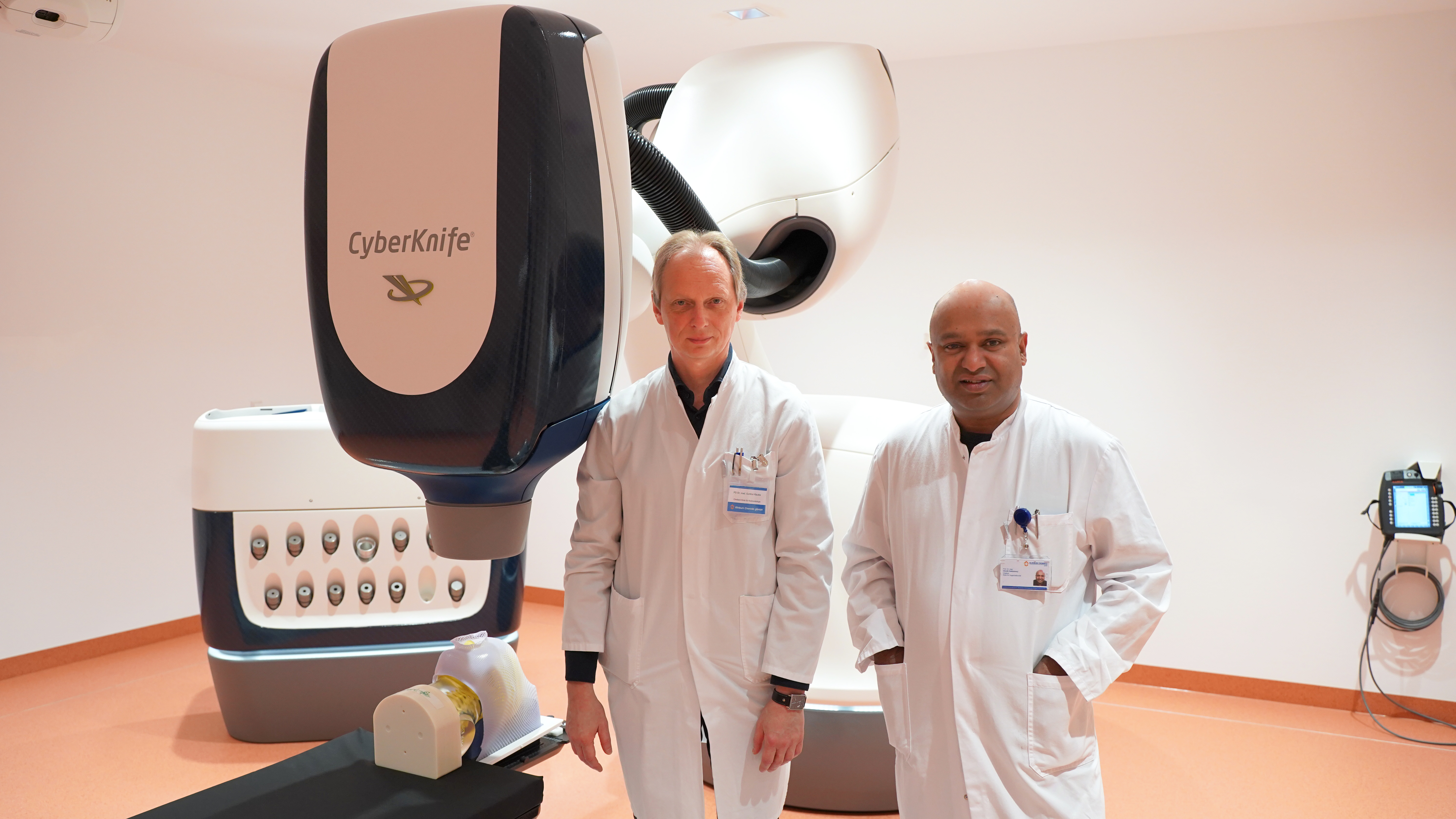 Das CyberKnife, von dem es nur acht Exemplare in ganz Deutschland gibt, besteht aus einem Linearbeschleuniger, also einem kompakten Bestrahlungsgerät, das an einem Roboterarm angebracht ist. Die Konstruktion ermöglicht eine Bestrahlung aus allen denkbaren Einstrahlrichtungen, ohne, dass sich ein gesundes Organ im Strahlengang befindet. Darüber hinaus ist es das weltweit einzige Therapiesystem, welches nicht nur die Atem-Beweglichkeit von Tumoren erkennt, sondern diese auch dank des Roboterarmes ausgleichen kann. Kombiniert mit einem Magnetresonanztomografie- Gerät, welches Bilddaten für die Bestrahlungsplanung liefert, bietet das CyberKnife die Möglichkeit, bewegliche Tumoren überall im Körper effektiv zu erkennen und zu behandeln.