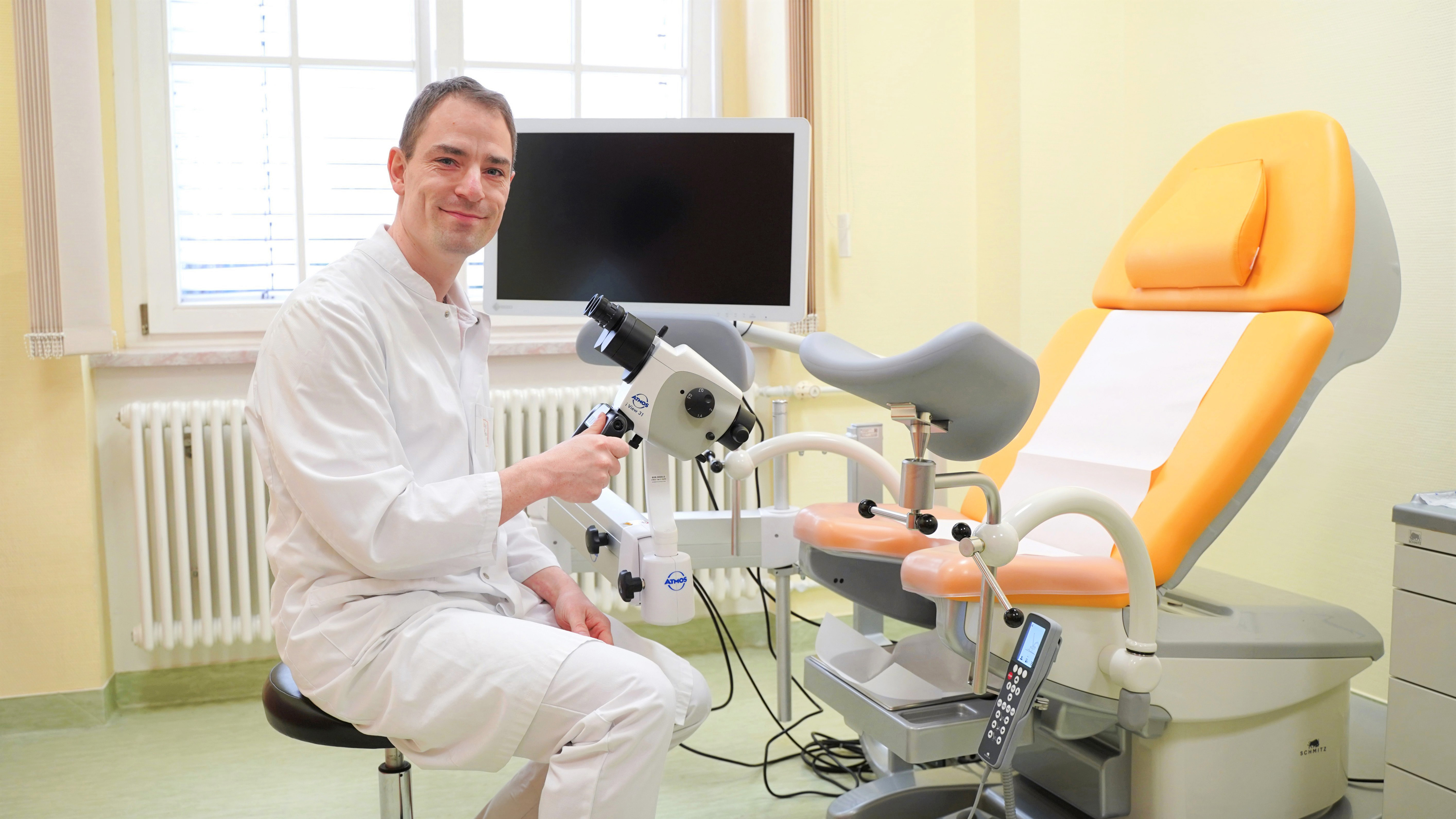 Das operative Spektrum umfasst alle modernen Verfahren wie organ- und fertilitätserhaltende Techniken, komplexe plastisch-rekonstruktive Eingriffe und moderne Schlüssellochchirurgie (Laparoskopie). Ergänzt wird die chirurgische Expertise durch Systemtherapien wie Chemo- oder Antikörpertherapien im Rahmen der ambulanten spezialfachärztlichen Versorgung (ASV), was eine lückenlose und wohnortnahe Betreuung von der Diagnose über die Therapie bis teilweise zur Nachsorge ermöglicht. Flankiert wird dieses Leistungsangebot durch spezialisierte Sprechstunden. Ein zentraler Pfeiler innerhalb der onkologischen Behandlungspfade ist die erstzertifizierte Dysplasie-Sprechstunde. Hier werden Patientinnen mit unklaren Befunden der Krebsvorsorge – etwa auffälligen Pap-Abstrichen oder chronischen HPV-Infektionen – mittels hochmoderner Lupenoptik (Kolposkopie) untersucht. Ziel ist es, Zellveränderungen am Muttermund, der Scheide oder den Schamlippen frühzeitig zu identifizieren und präzise abzuklären. Durch diese spezialisierte Diagnostik können Krebsvorstufen sicher erkannt und oft mit minimalinvasiven Mitteln behandelt werden, noch bevor eine bösartige Erkrankung entsteht. Seit Februar 2026 kommt bei der Abklärungskolposkopie ein neues, modernes Kolposkop zum Einsatz, um die Qualität der Befundung weiter zu steigern.