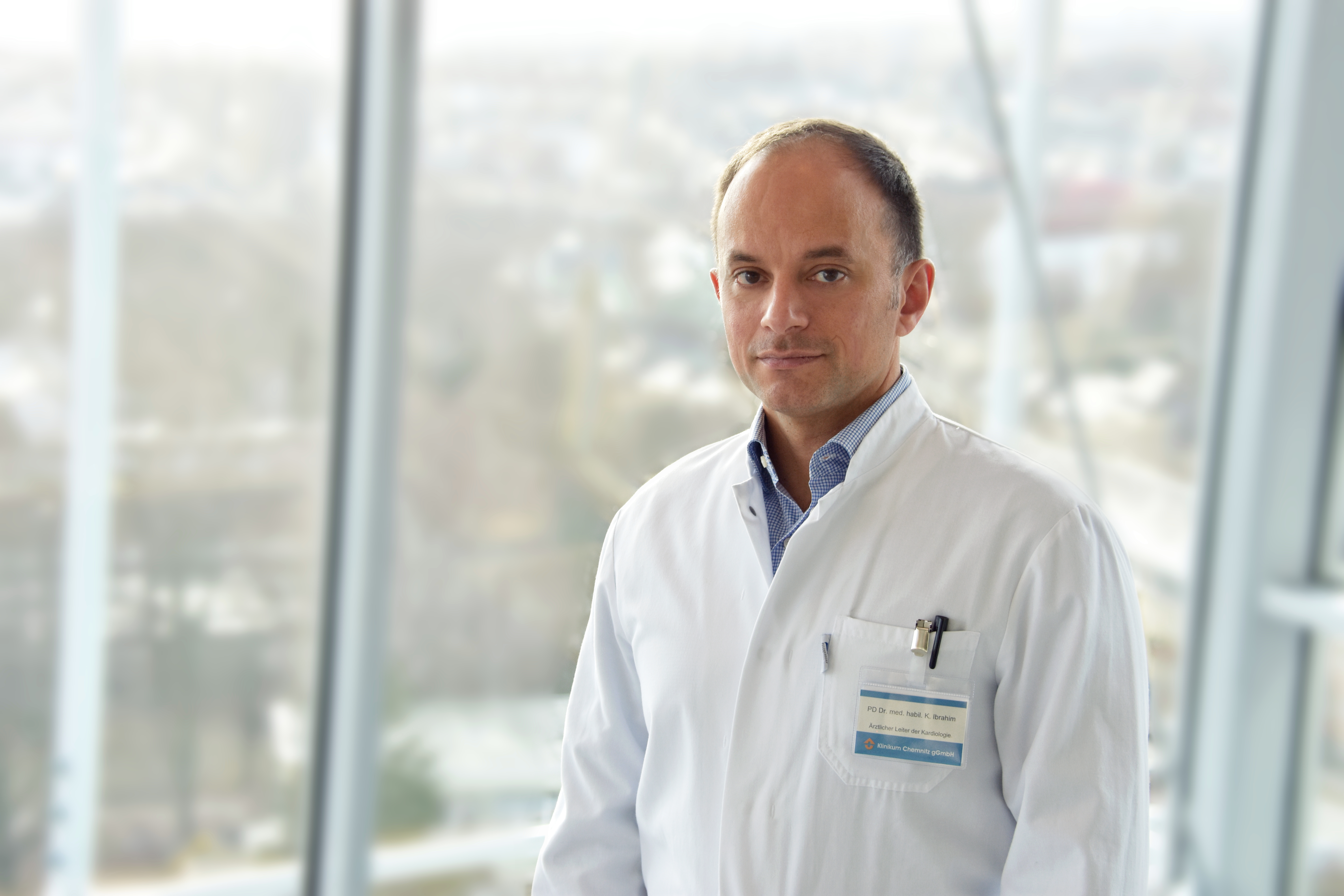 Prof. Ibrahim war im Juni 2019 aus dem Universitätsklinikum Dresden, wo er kommissarisch die medizinische Versorgung sowie Lehre und Forschung der Kardiologie im Herzzentrum Dresden geleitet hat, ans Klinikum Chemnitz gekommen. Der renommierte Internist und Kardiologe hat sein Spezialgebiet neben den hochkomplexen Interventionen an Herzkranzgefäßen im Bereich der minimalinvasiven katheterbasierten Herzklappeneingriffe. Darüber hinaus ist er europaweit führend im Einsatz sogenannter kardialer Assist-Systeme, also Systeme zur Herzunterstützung, die minimalinvasiv eingesetzt werden. Prof. Ibrahim übernahm Mitte 2019 am Klinikum die Ärztliche Leitung des Bereichs Kardiologie und verstärkte das bereits breit aufgestellte kardiologische Team weiter. Gemeinsam mit ihm wechselten PD Dr. Marian Christoph, ein ausgewiesener Experte auf dem Gebiet der Rhythmologie, PD Dr. Silvio Quick, Spezialist der nicht-invasiven kardialen Bildgebung, sowie Oberarzt Dr. Akram Youssef als interventioneller Kardiologe aus Dresden nach Chemnitz.