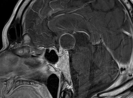 Das Hypophysenadenom, heute zunehmend auch als pituitäres neuroendokrines Tumorleiden (pitNET) bezeichnet, ist eine meist gutartige Neubildung aus Zellen des Hypophysenvorderlappens. Durch das Tumorwachstum kann gesundes Hypophysengewebe in der knöchernen Sella turcica verdrängt werden, was zu einem Hormonmangel (Hypopituitarismus) führt. Dabei können einzelne Hormone oder mehrere Hormonachsen betroffen sein. Wächst der Tumor nach oben, kann er auf die Sehnervenkreuzung drücken und Sehstörungen verursachen.